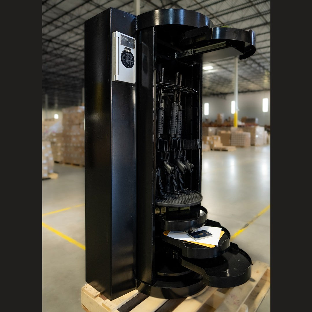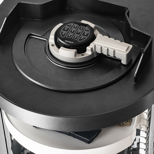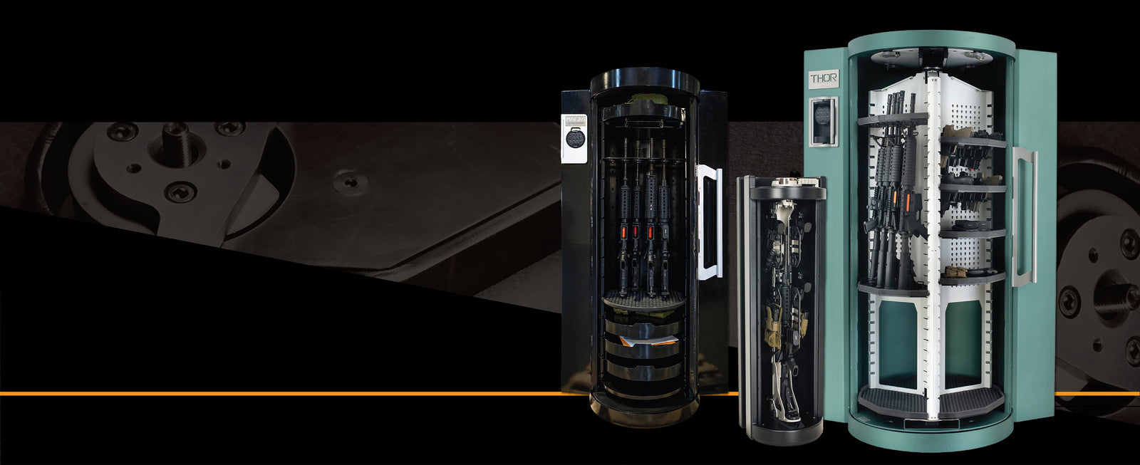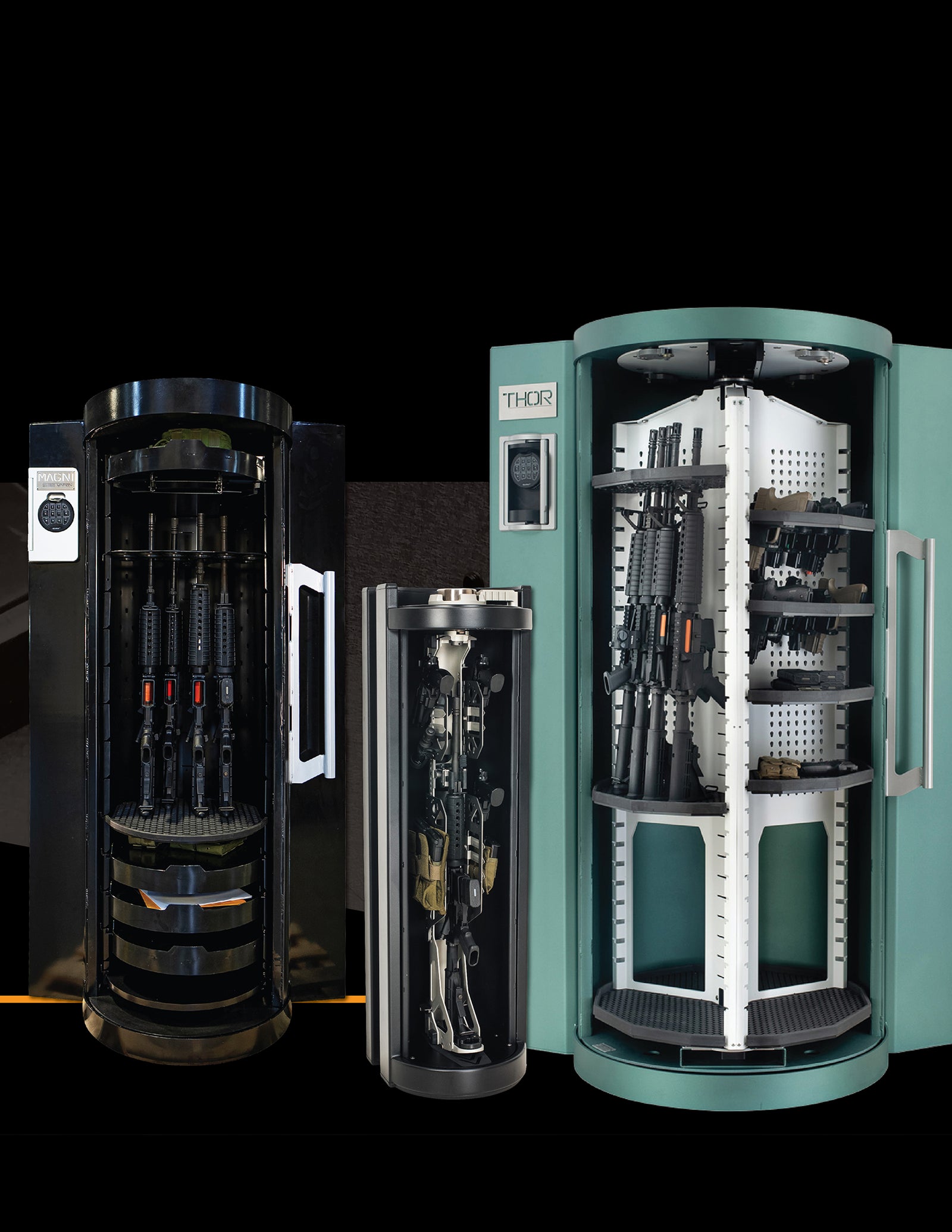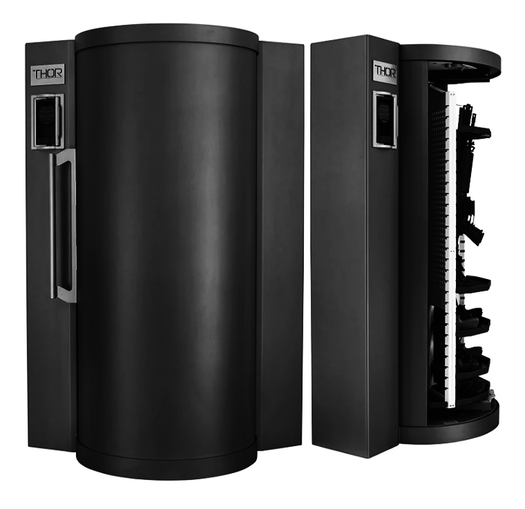 The THOR allows the user unrestricted access to all of the stored weapons with a rotating interior. The THOR is delivered with a bio-metric keypad which allows access in less than 4 seconds.